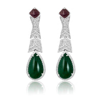 Tourmaline with Emerald Cabuchon & Diamond Earrings