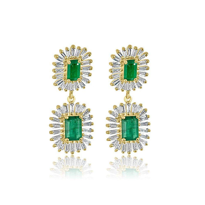 Rectangle Shape Diamond Earring in 14K Yellow Gold