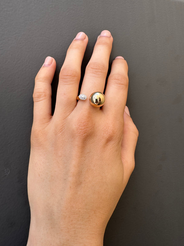 14K Yellow Gold Open Circle & Diamond Drop Rings