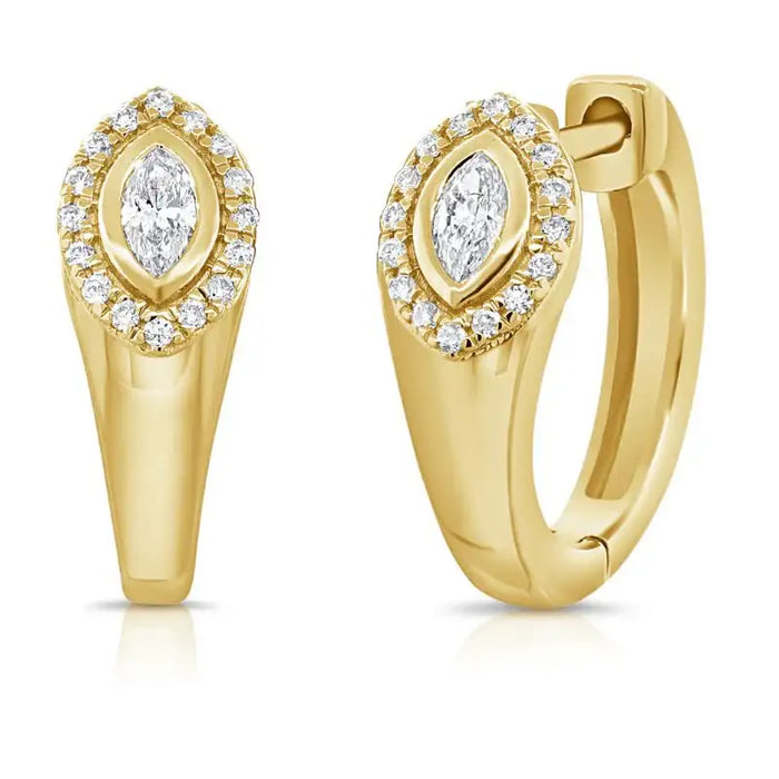 Aretes rectangulares de oro amarillo de 14 quilates y diamantes