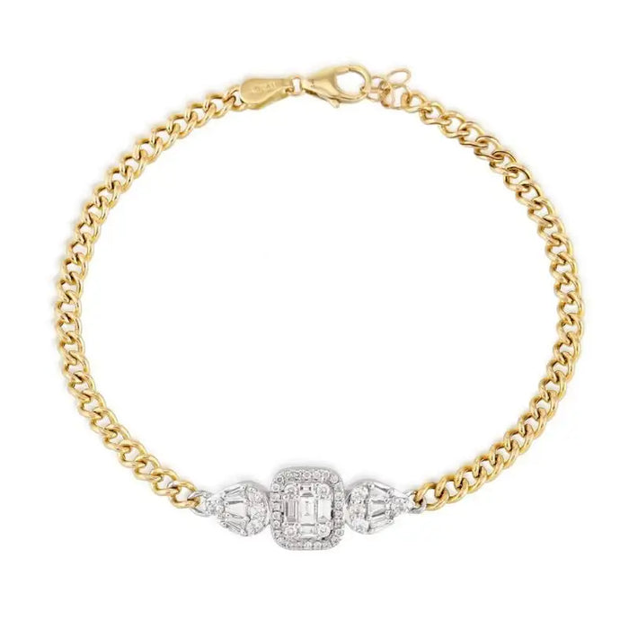 Pulsera con diamantes baguet y cadena cubana oro amarillo