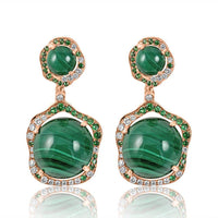 Malachite & Diamond Double Round Earrings with 14K Rose Gold.