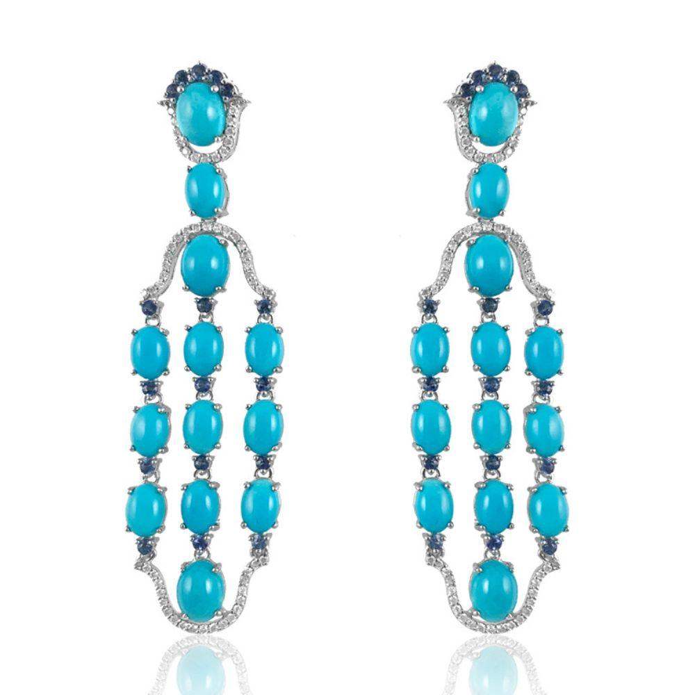 Sleeping Beauty Turquoise with Blue Sapphire & Diamond Dangle Earrings, perfect for special occasions.